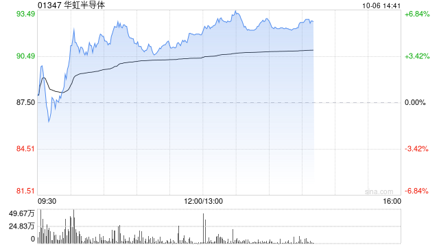10月6日消息,华虹半导体港股涨幅扩大超5%,再创历史新高,公司21个交易日股价翻倍。截至发文,华虹半导体涨5.14%,报价92港元,成交额逾8亿港元。