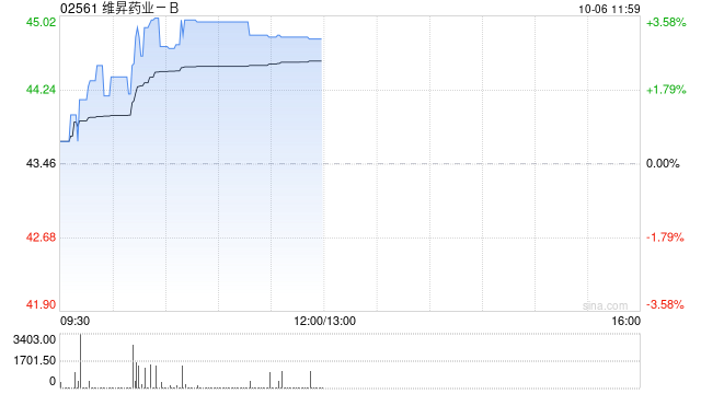 维昇药业-B(02561)午前股价上涨3.08%,现报44.80港元,成交额104.211万港元。