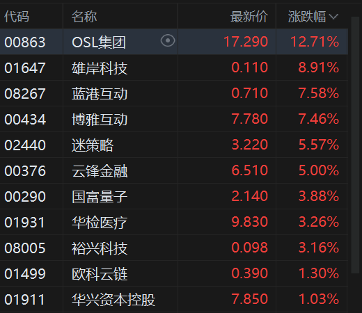 加密货币概念股涨幅居前,OSL集团涨超12%。10月5日,受美国政府关门影响的广泛风险资产上涨,比特币在市场的推动下突破12.5万美元大关,创下历史新高。花旗银行分析师表示,比特币如今被视为一种“数字黄金”,这有助于解释二者价格走势的相关性。基于投资者持续的需求,他给出了比特币12个月内达到181000美元的目标价。